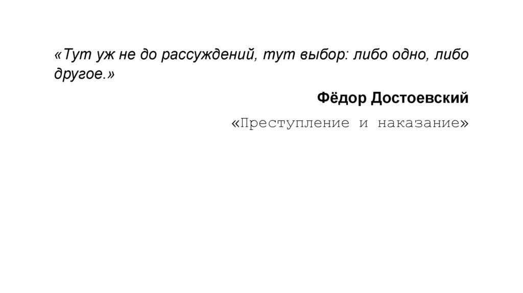 «Тут уж не до рассуждений, тут выбор: либо одно, либодругое.»