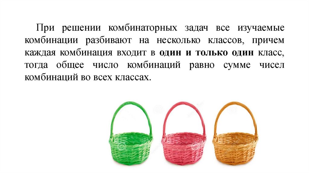 При решении комбинаторных задач все изучаемыекомбинации разбивают на несколько классов, причем