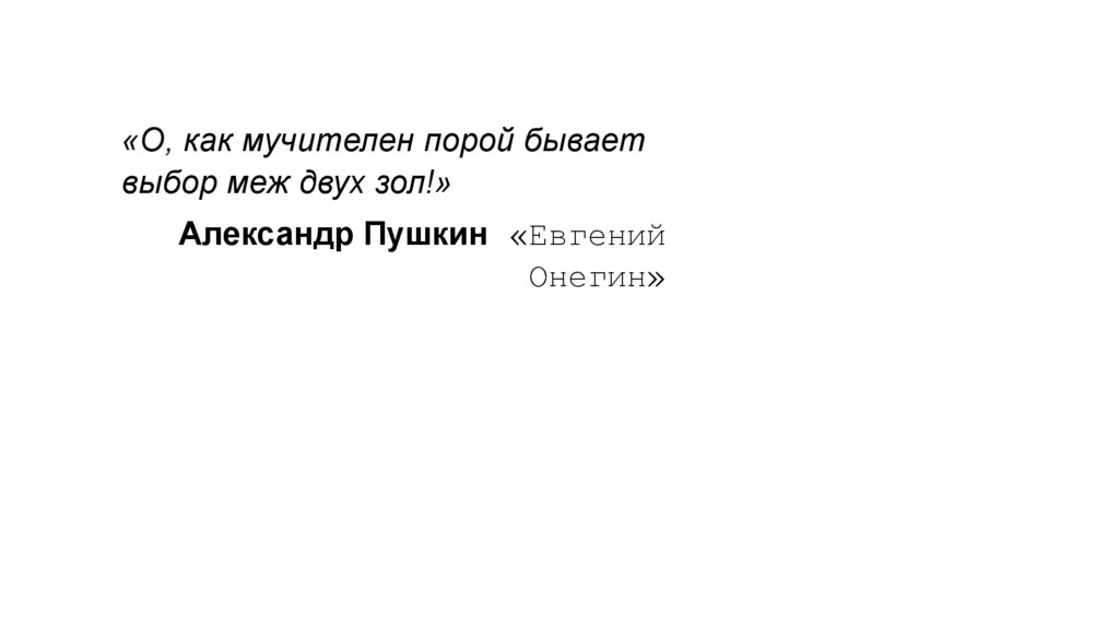 «О, как мучителен порой бываетвыбор меж двух зол!»