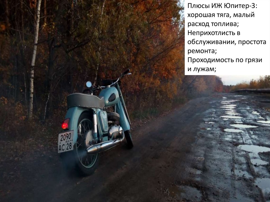 Плюсы ИЖ Юпитер-3:хорошая тяга, малый