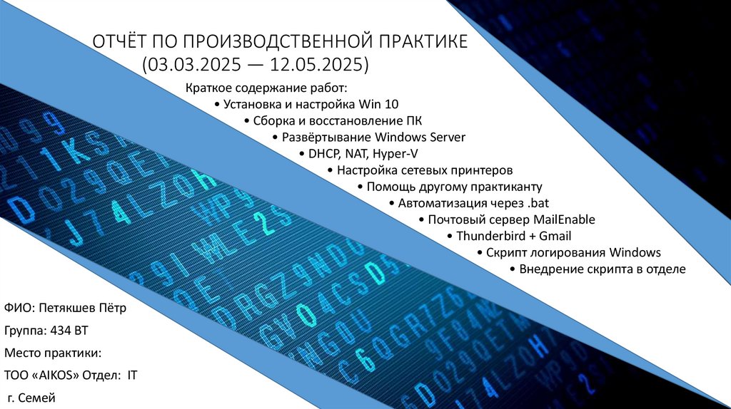 1. ОТЧЁТ ПО ПРОИЗВОДСТВЕННОЙ ПРАКТИКЕ (03.03.2025 — 12.05.2025)