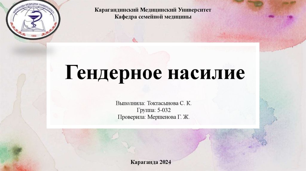 Карагандинский Медицинский УниверситетКафедра семейной медицины