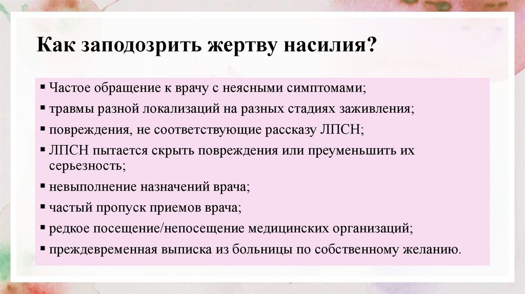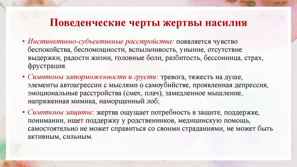 • о возможных последствиях для жертв или свидетелей насилия, в