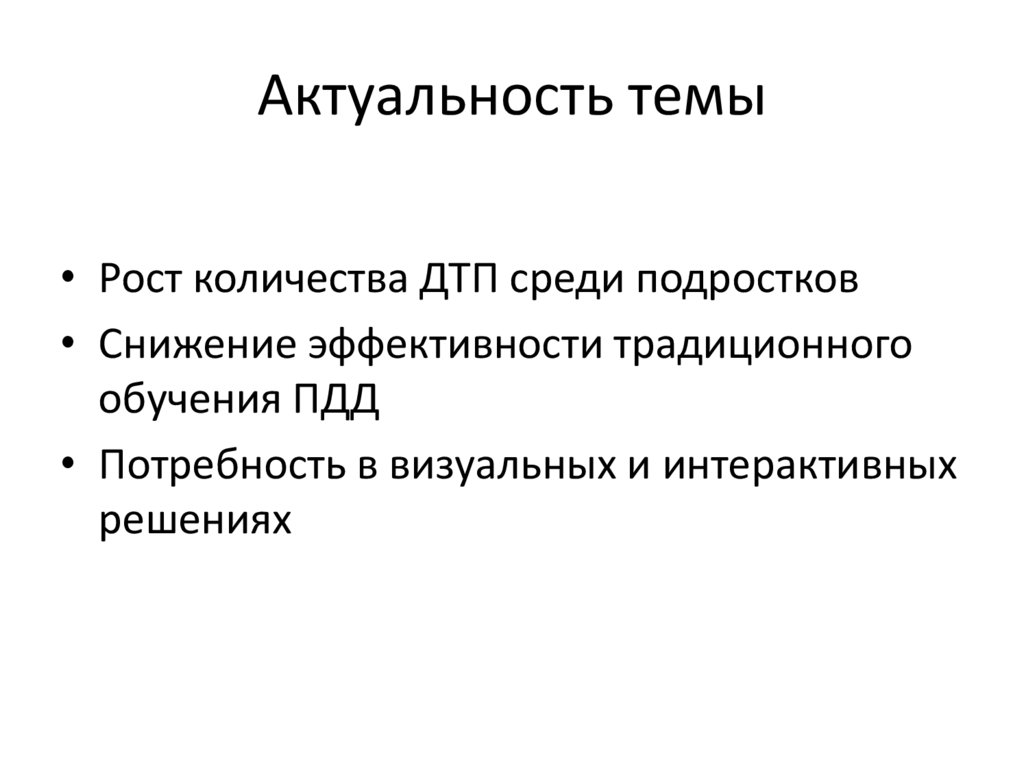 Актуальность темы• Рост количества ДТП среди подростков