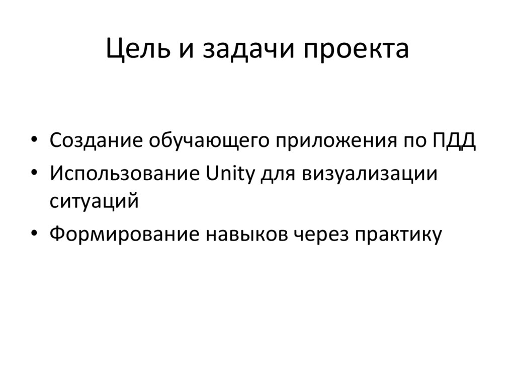 Цель и задачи проекта• Создание обучающего приложения по ПДД