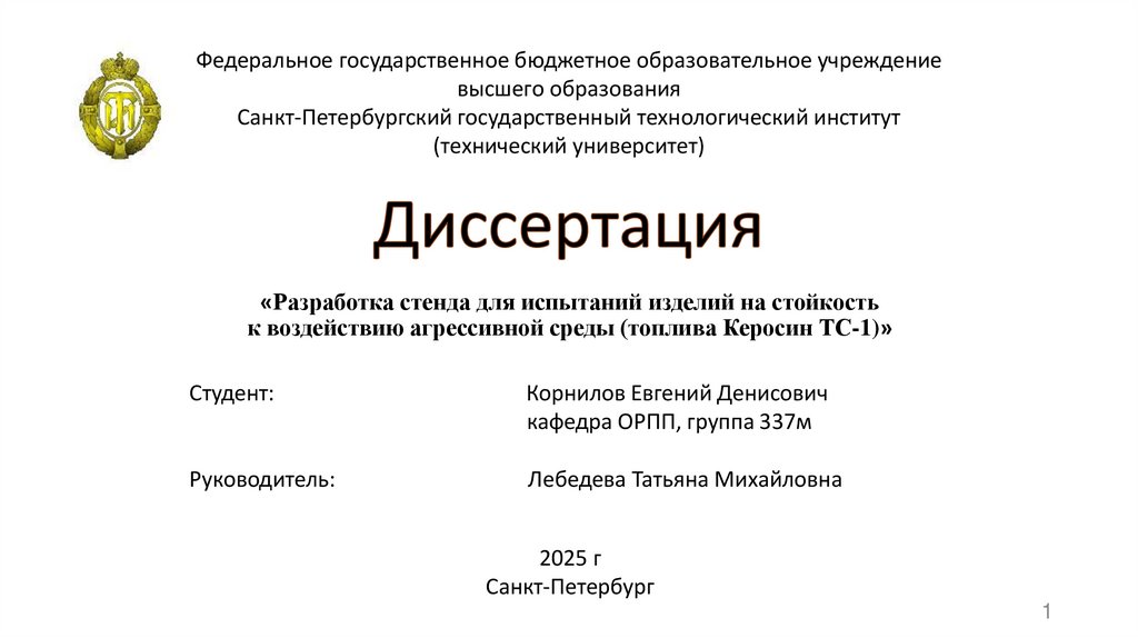 к воздействию агрессивной среды (топлива Керосин ТС-1)»