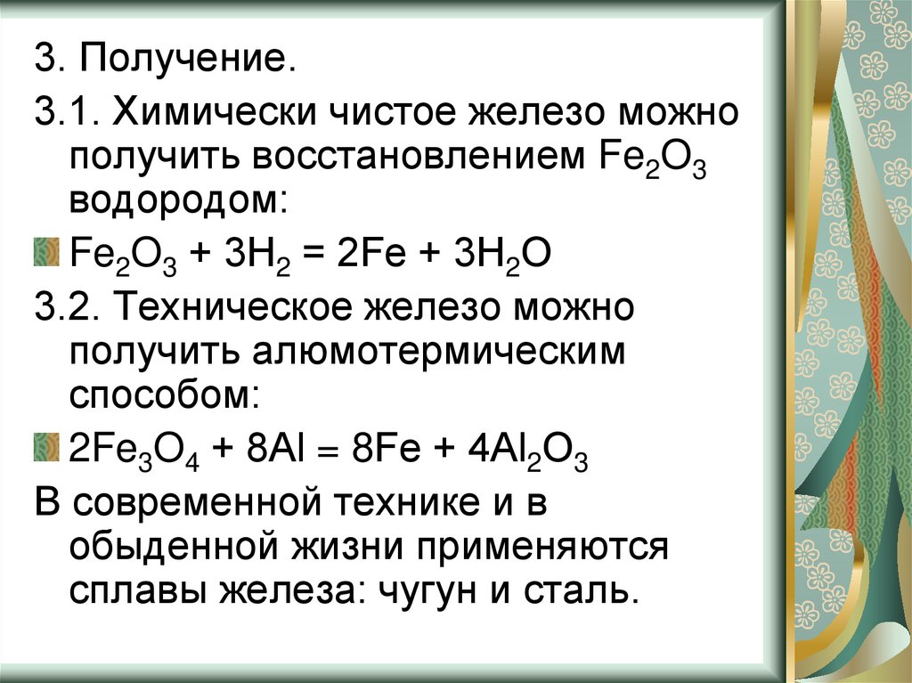 Fe2O3 + 3Н2 = 2Fe + 3Н2О