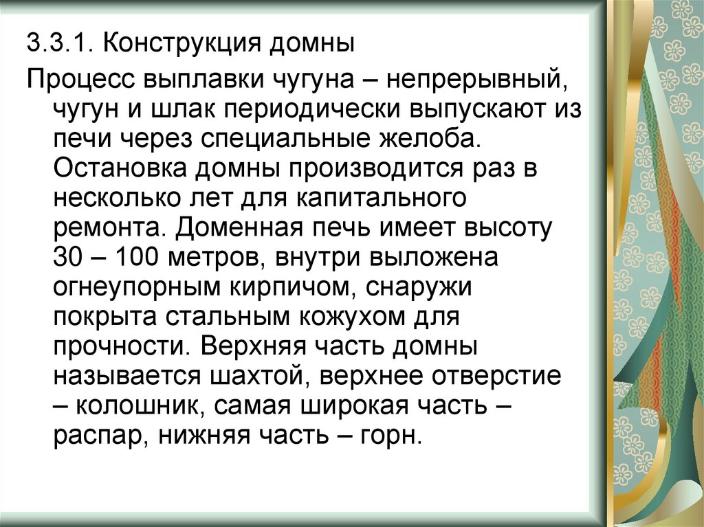 3.3.1. Конструкция домныПроцесс выплавки чугуна – непрерывный,