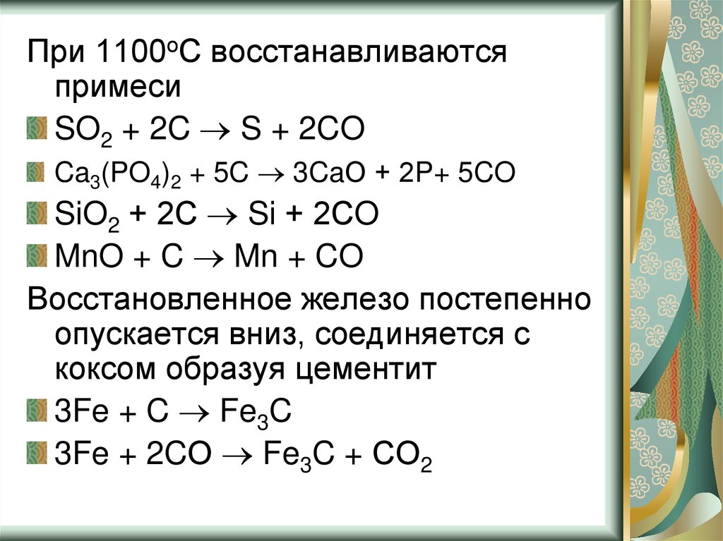 3.3.3. Химизм процессаВ верхней части горна при температуре