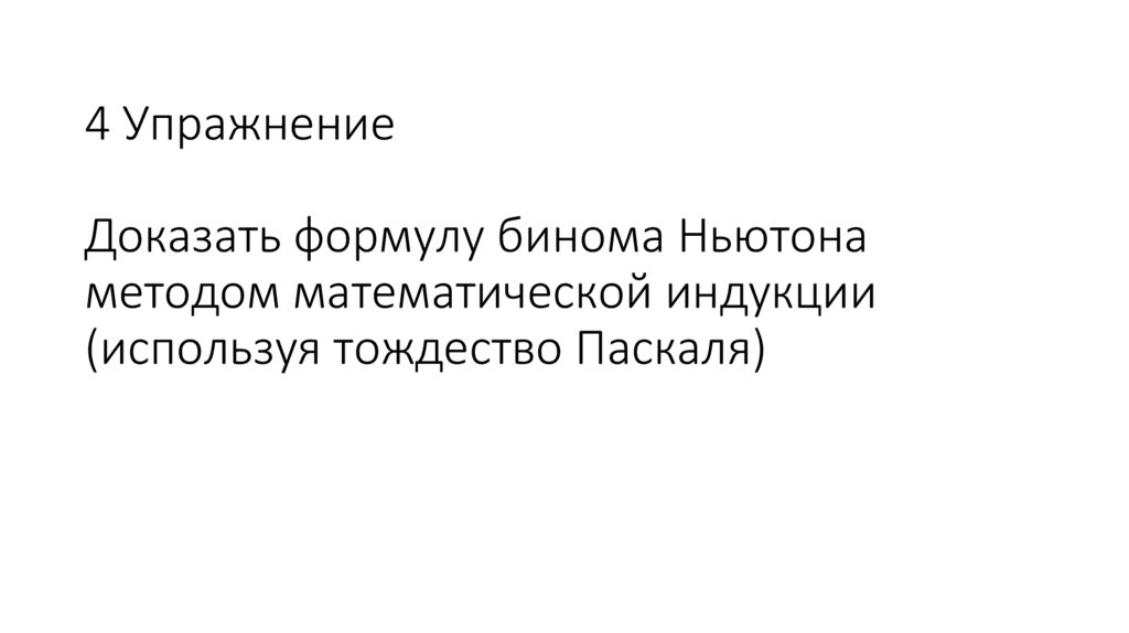20. 4 Упражнение Доказать формулу бинома Ньютона методом математической индукции (используя тождество Паскаля)