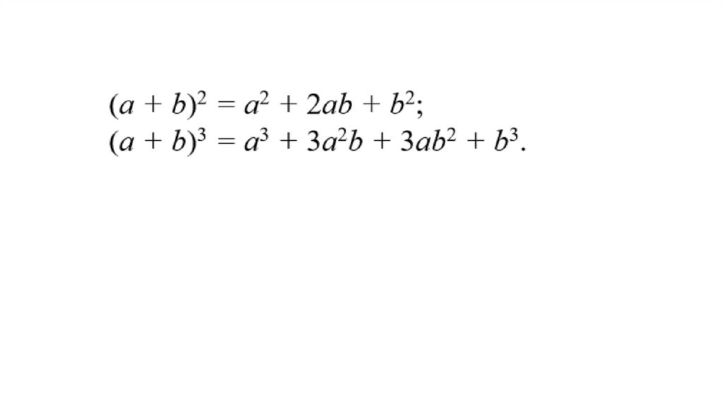 (a + b)2 = a2 + 2ab + b2;(a + b)3 = a3 + 3a2b + 3ab2 + b3.