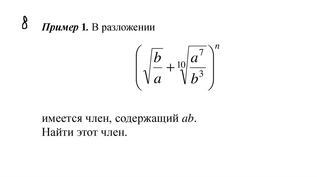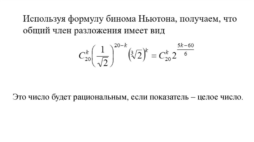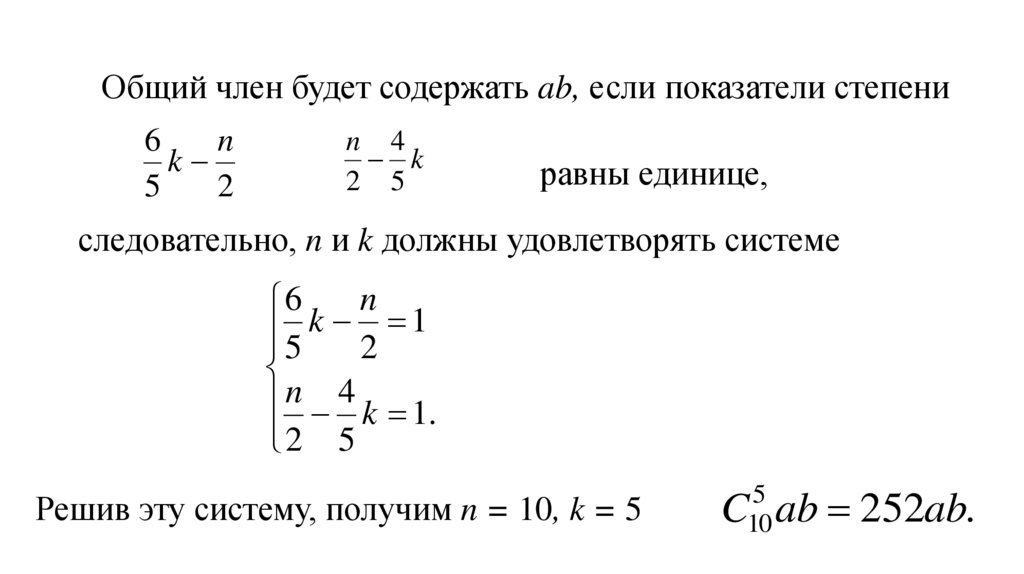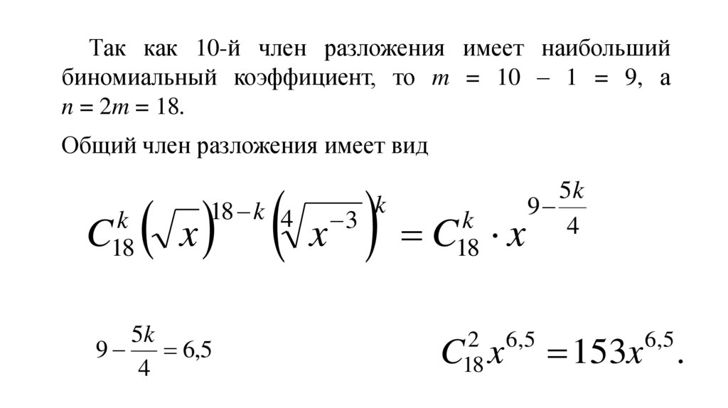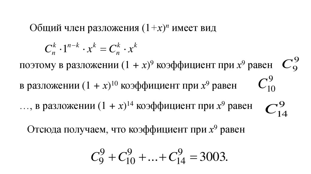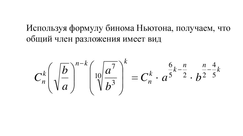 Используя формулу бинома Ньютона, получаем, чтообщий член разложения имеет вид