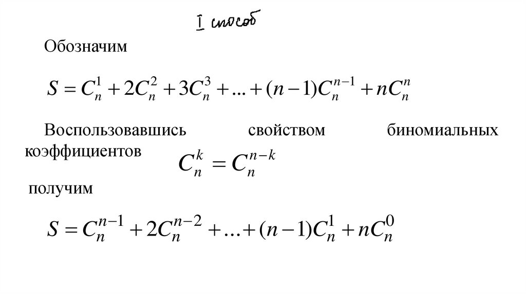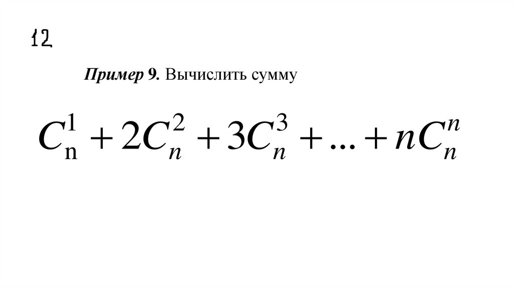 Пример 9. Вычислить суммуC 2C 3C ... nC