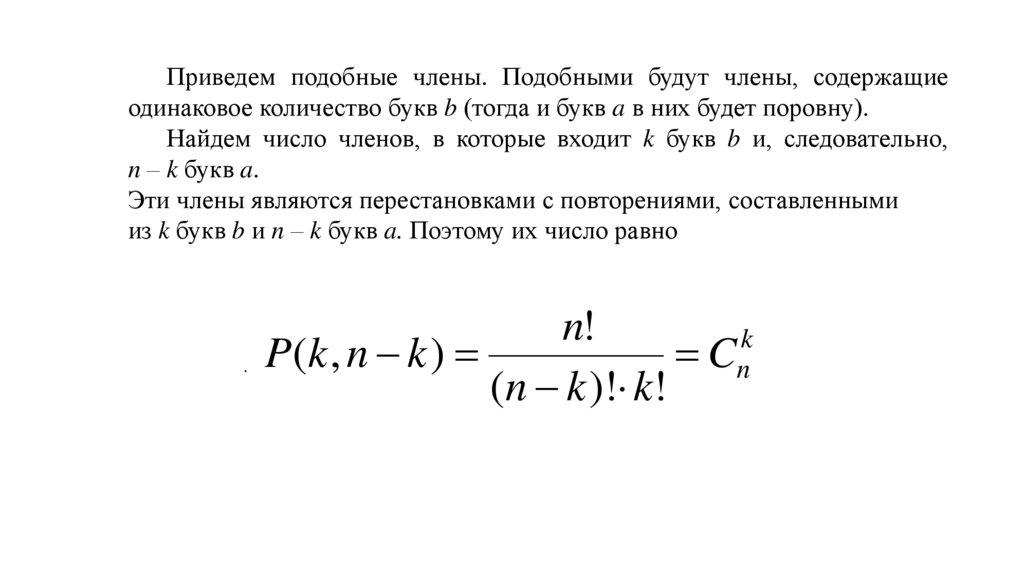 Найдем число членов, в которые входит k букв b и, следовательно,