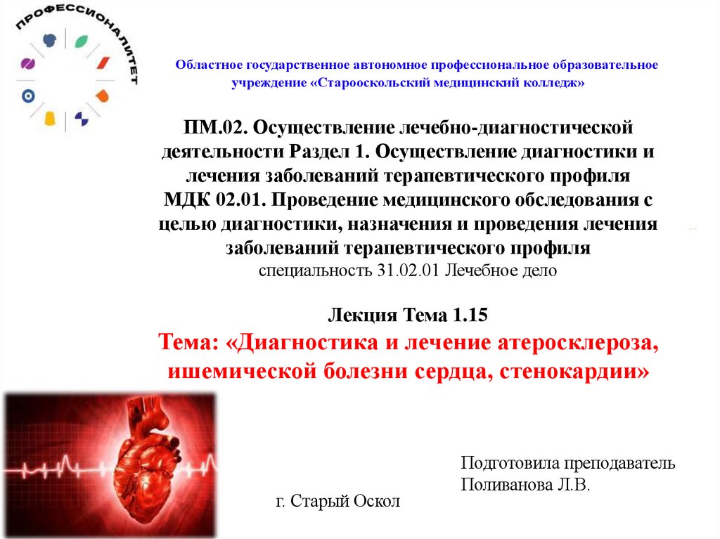 Диагностика и лечение атеросклероза, ишемической болезни сердца, стенокардии
