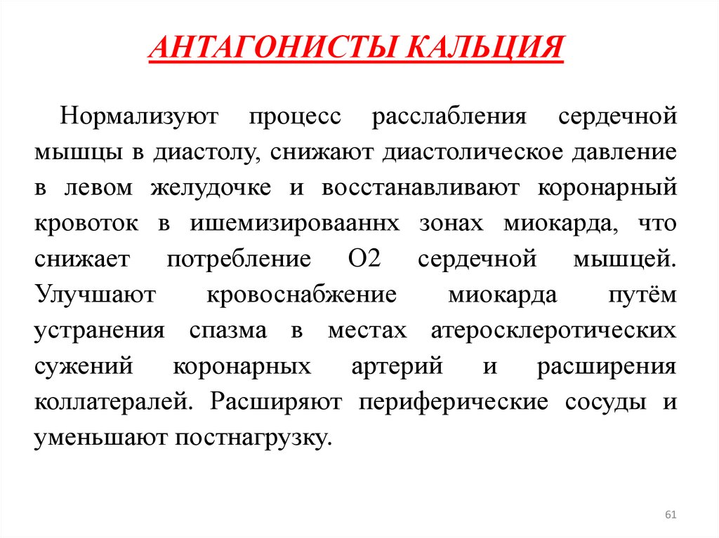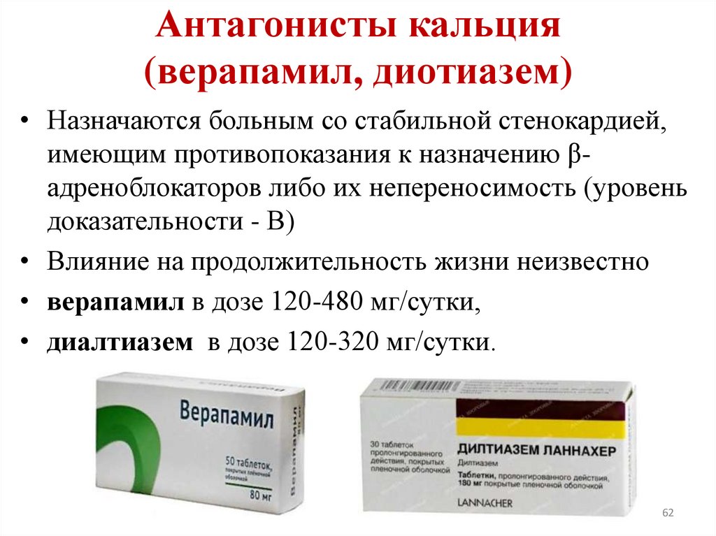 • Назначаются больным со стабильной стенокардией,имеющим противопоказания к назначению βадреноблокаторов либо их непереносимость (уровень