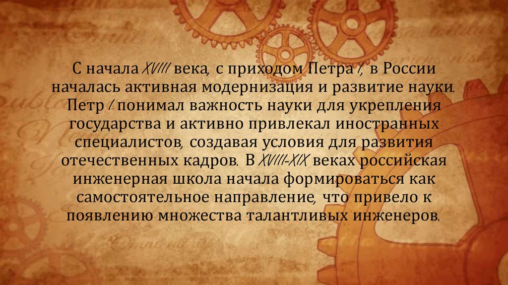 С начала XVIII века, с приходом Петра I, в Россииначалась активная модернизация и развитие науки.