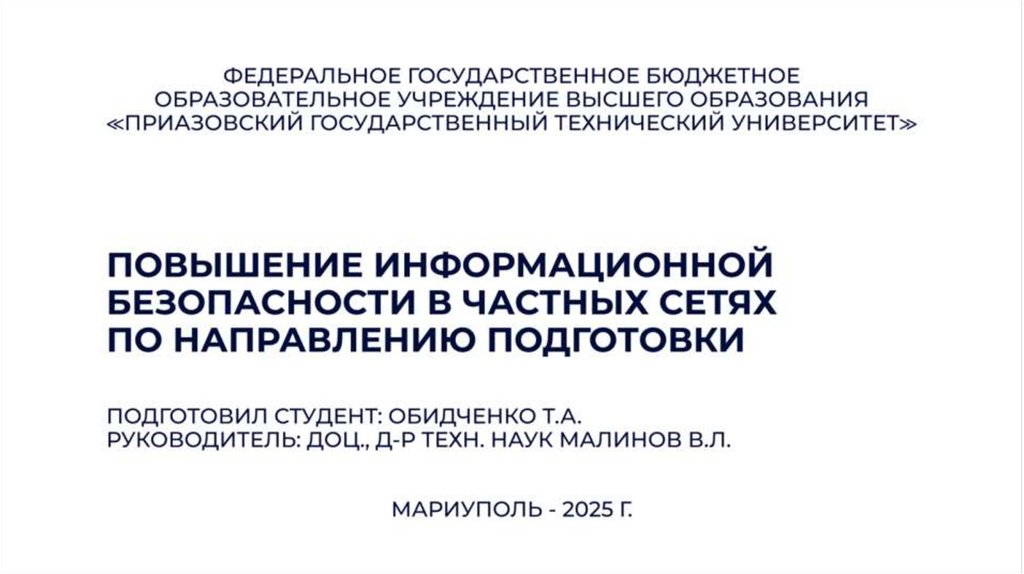 Повышение информационной безопасности в частных сетях по направлению подготовки