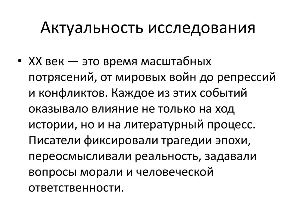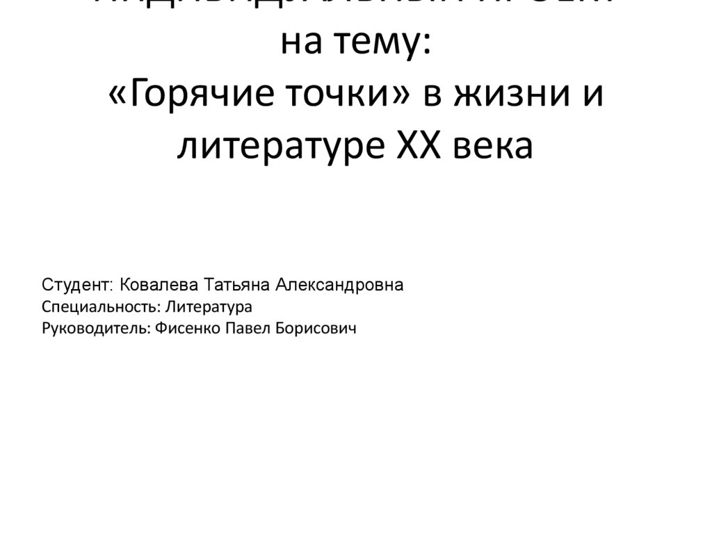 «Горячие точки» в жизни и литературе XX века. Актуальность исследования