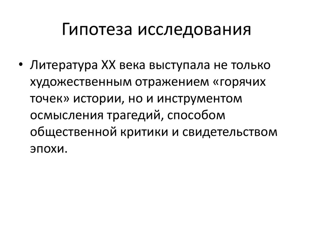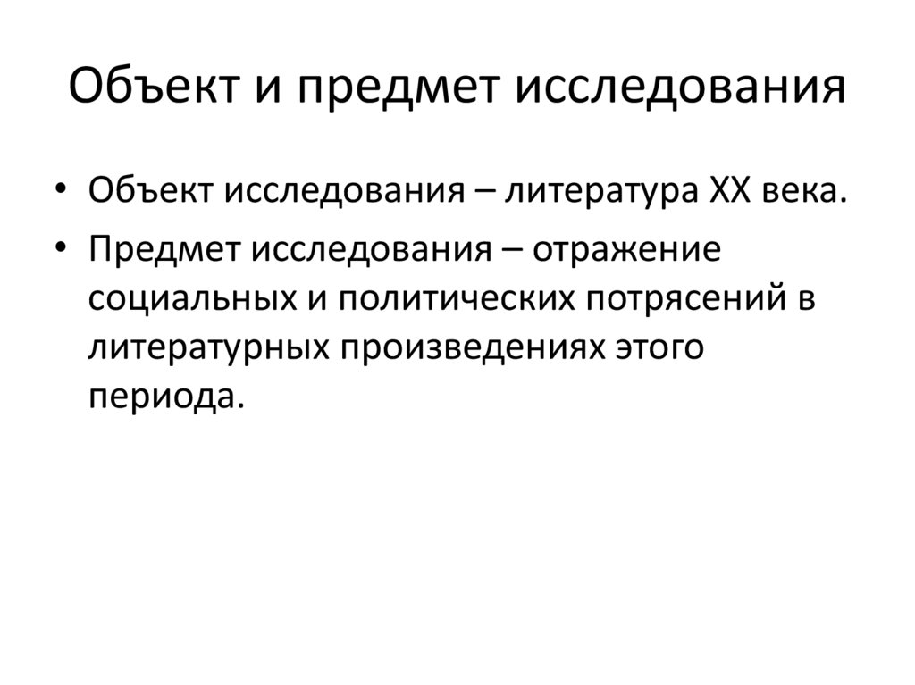 Объект и предмет исследования• Объект исследования – литература XX века.