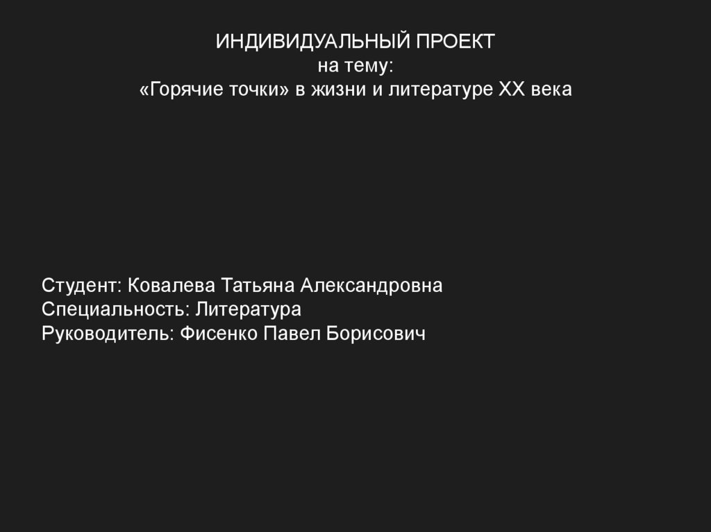 ИНДИВИДУАЛЬНЫЙ ПРОЕКТна тему:
