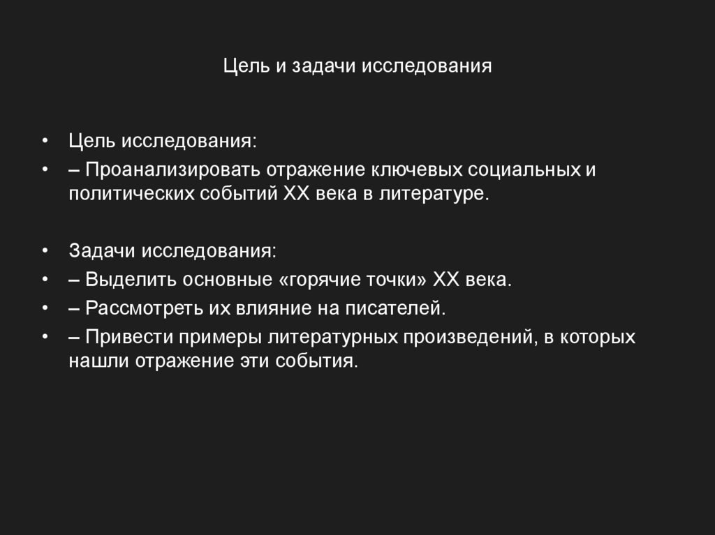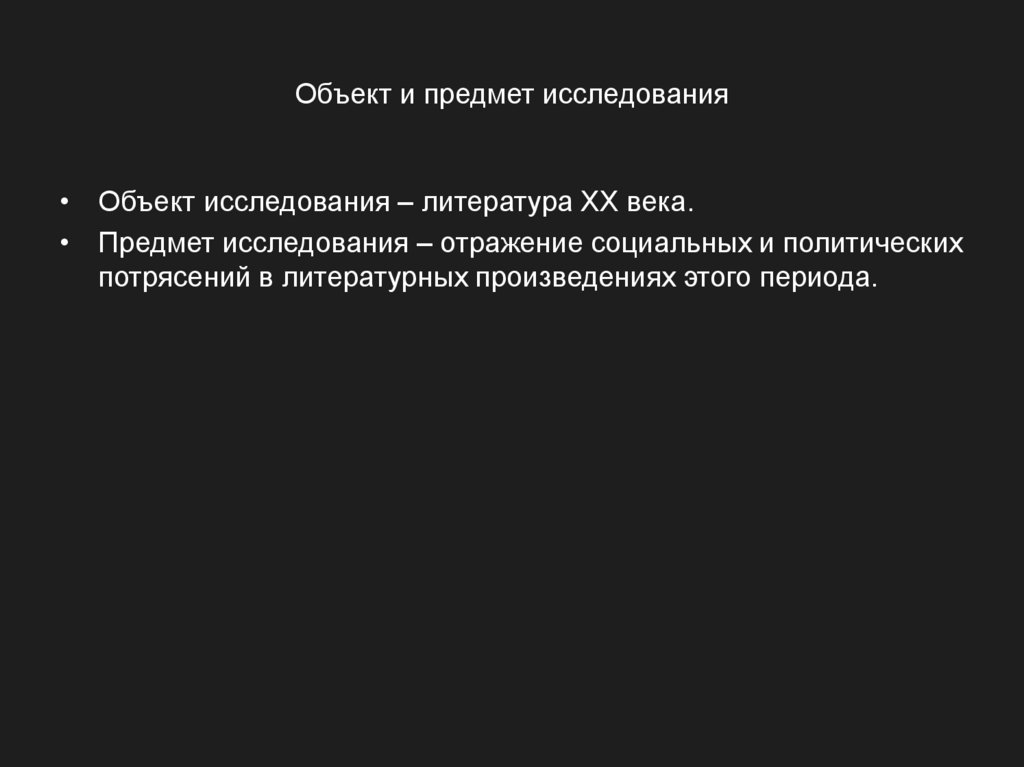 Объект и предмет исследования• Объект исследования – литература XX века.
