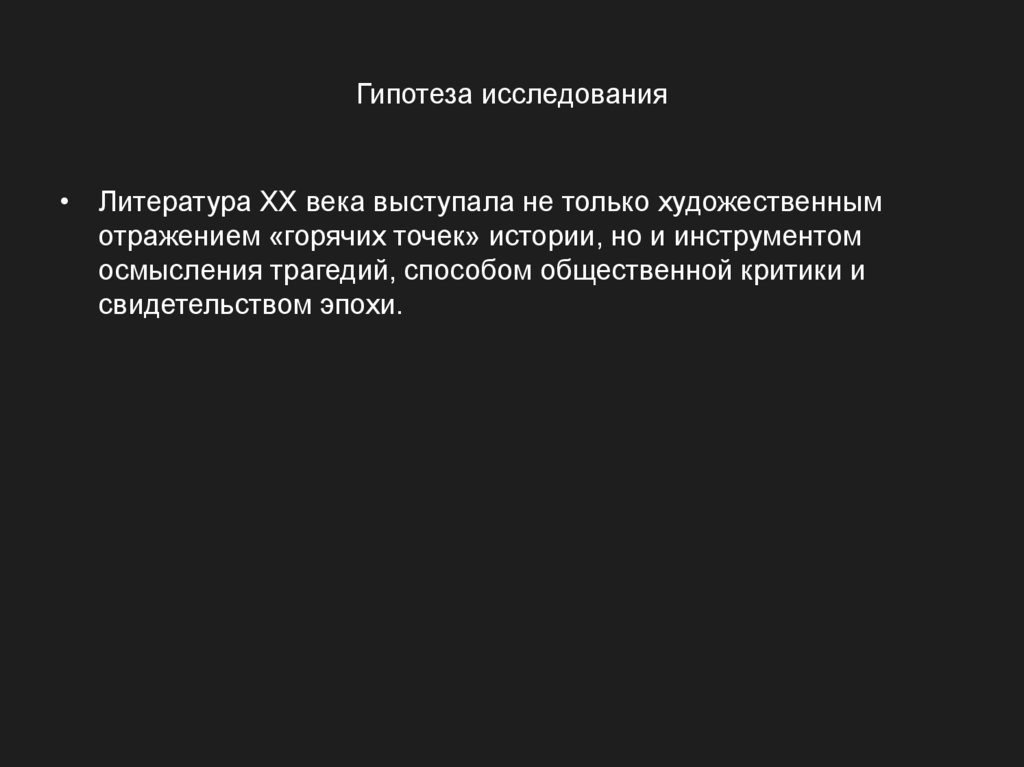 Гипотеза исследования• Литература XX века выступала не только художественным