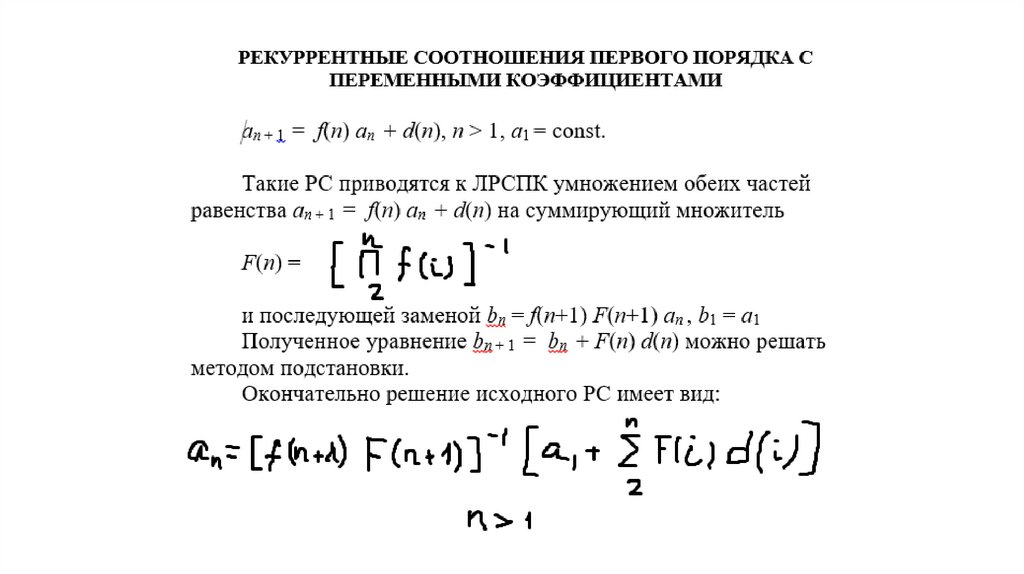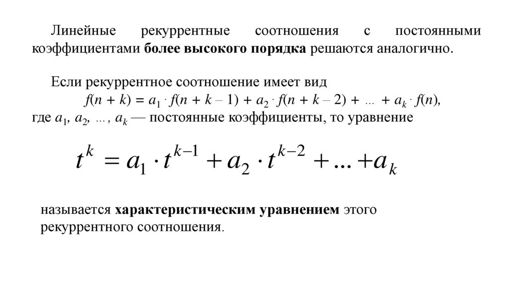 коэффициентами, т.е. для рекуррентных соотношений вида: