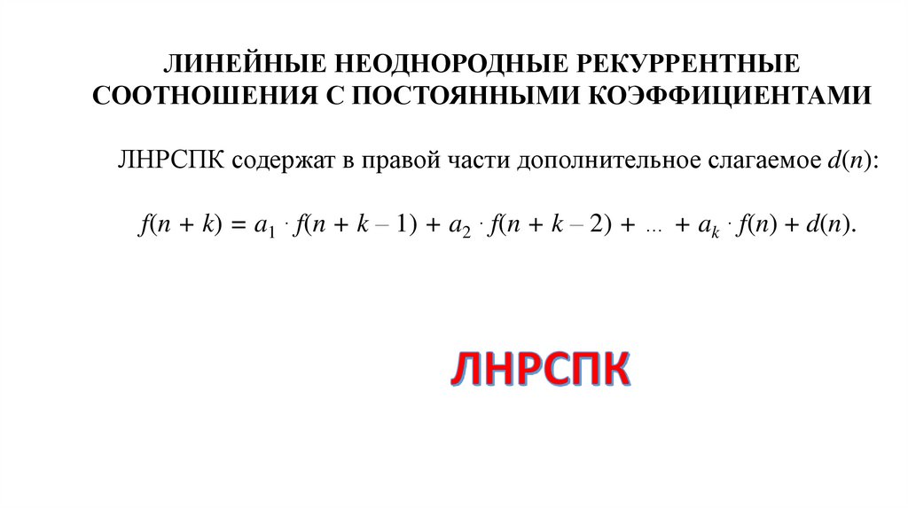 ЛНРСПК содержат в правой части дополнительное слагаемое d(n):