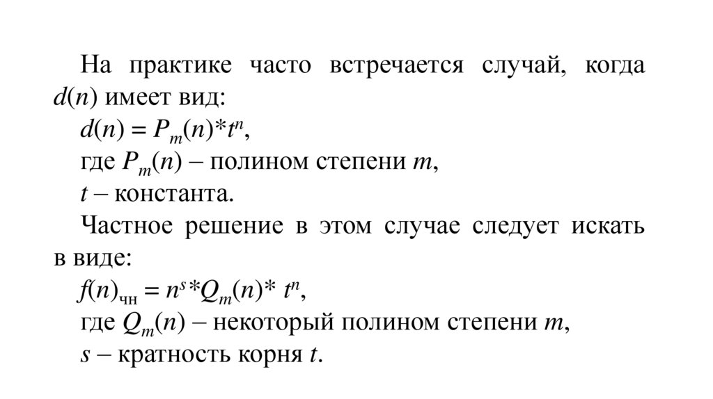 f(n + k) = a1 ∙ f(n + k – 1) + a2 ∙ f(n + k – 2) + … + ak ∙ f(n) + d(n).