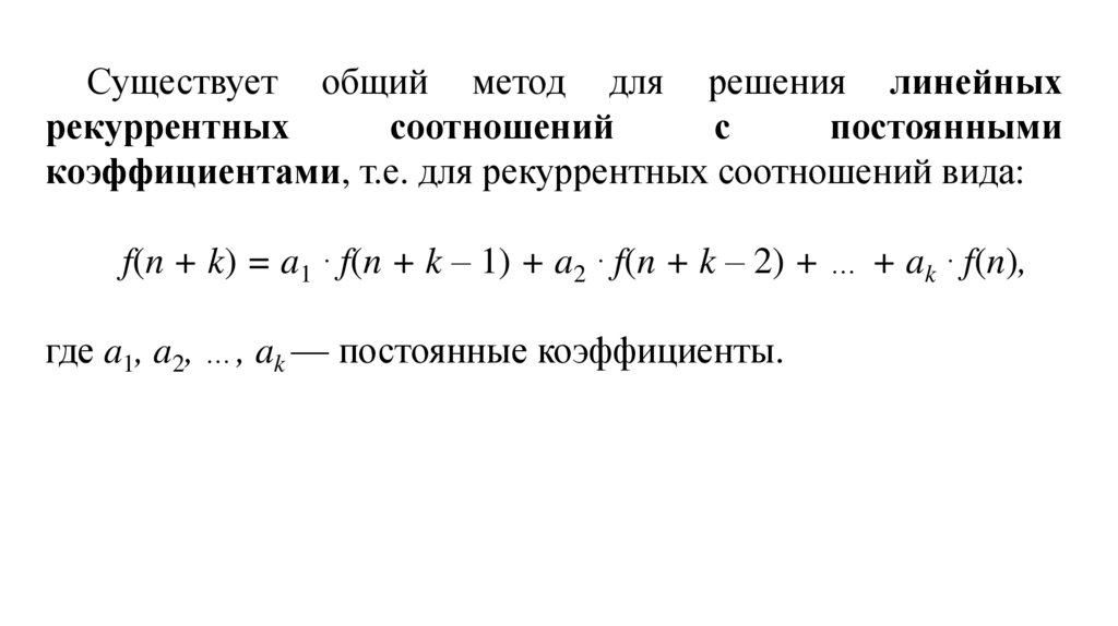 Существует общий метод для решения линейныхрекуррентных