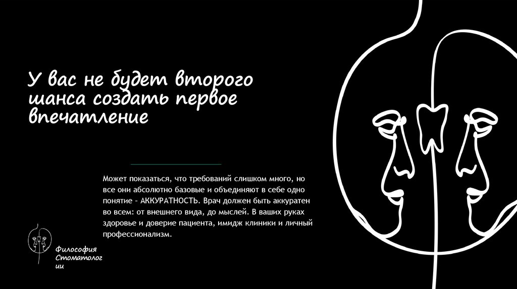 Голос нашего бренда – это сочетание профессионализма, заботы и философского подхода к стоматологии. Мы