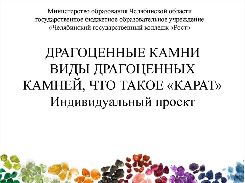 1. ДРАГОЦЕННЫЕ КАМНИ ВИДЫ ДРАГОЦЕННЫХ КАМНЕЙ, ЧТО ТАКОЕ «КАРАТ» Индивидуальный проект