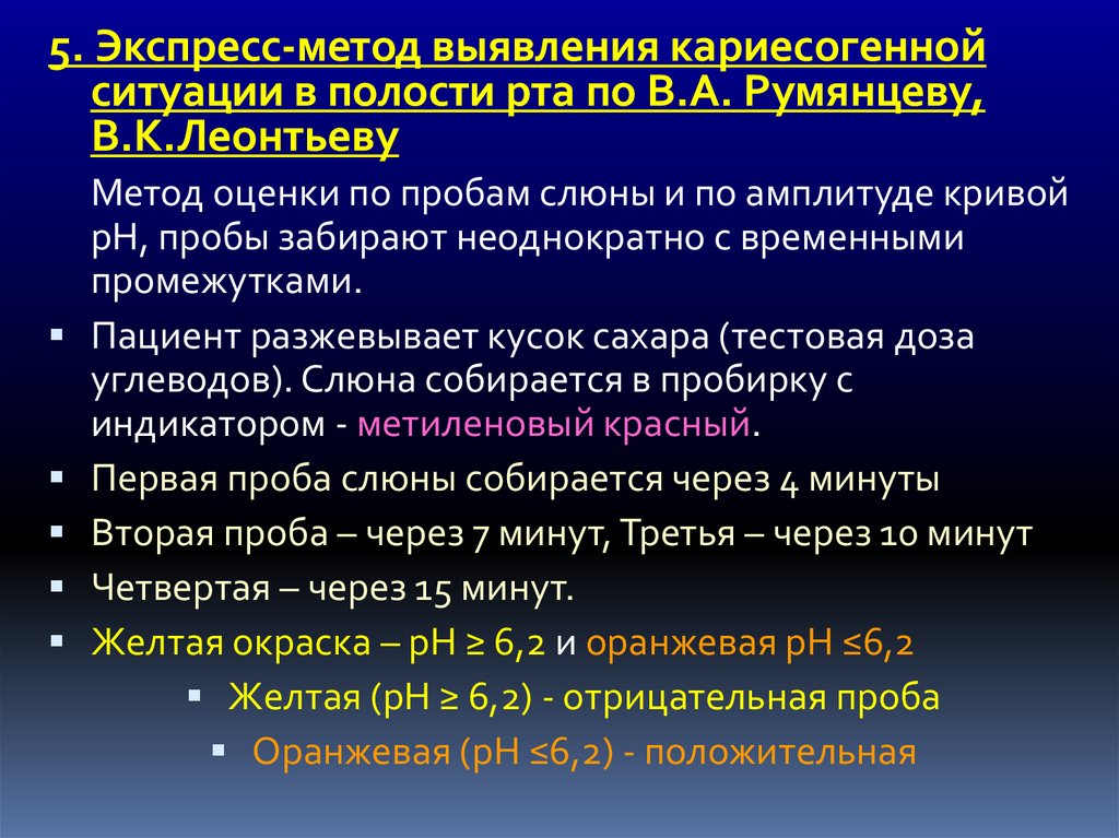 5. Экспресс-метод выявления кариесогеннойситуации в полости рта по В.А. Румянцеву,