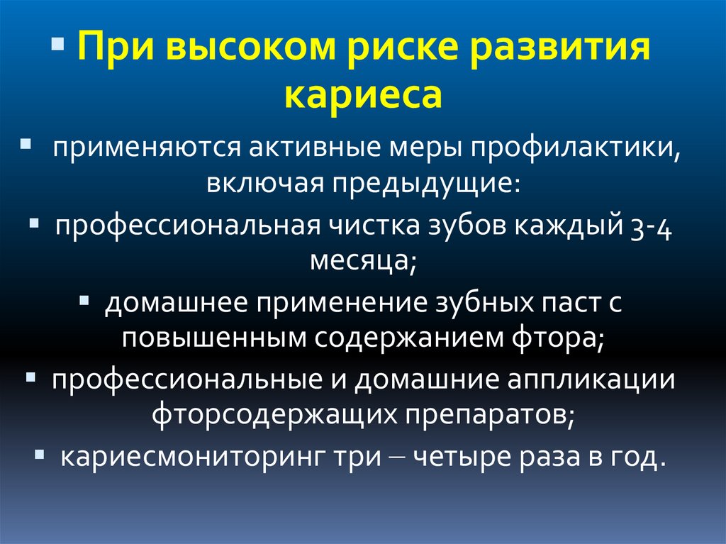 При среднем риске необходимо:контроль гигиенических навыков и их