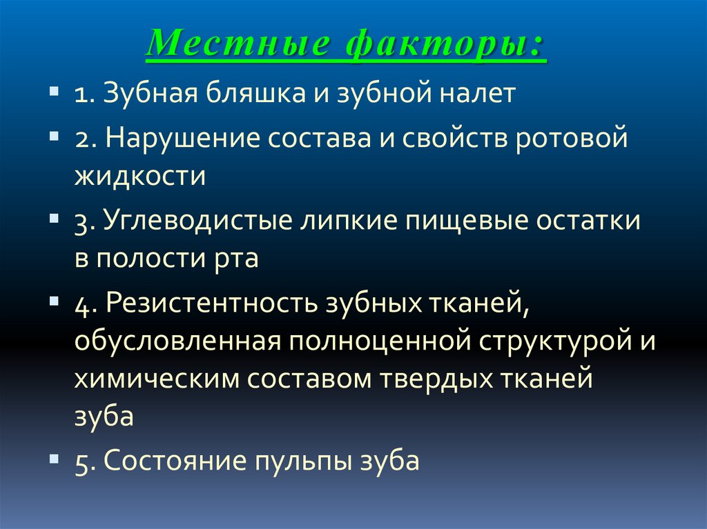 1. Зубная бляшка и зубной налет2. Нарушение состава и свойств ротовой