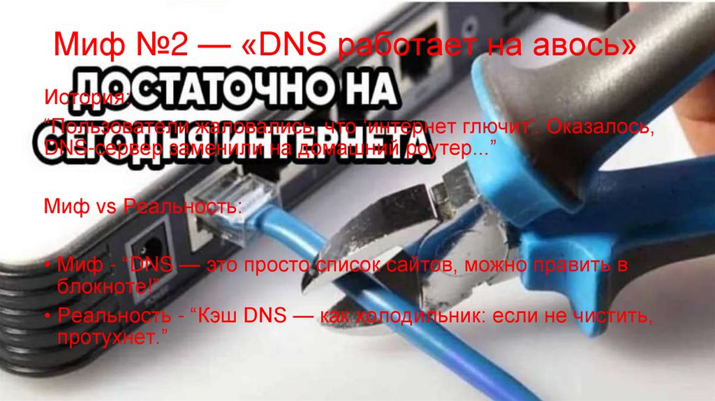 • Реальность - “Кэш DNS — как холодильник: если не чистить,