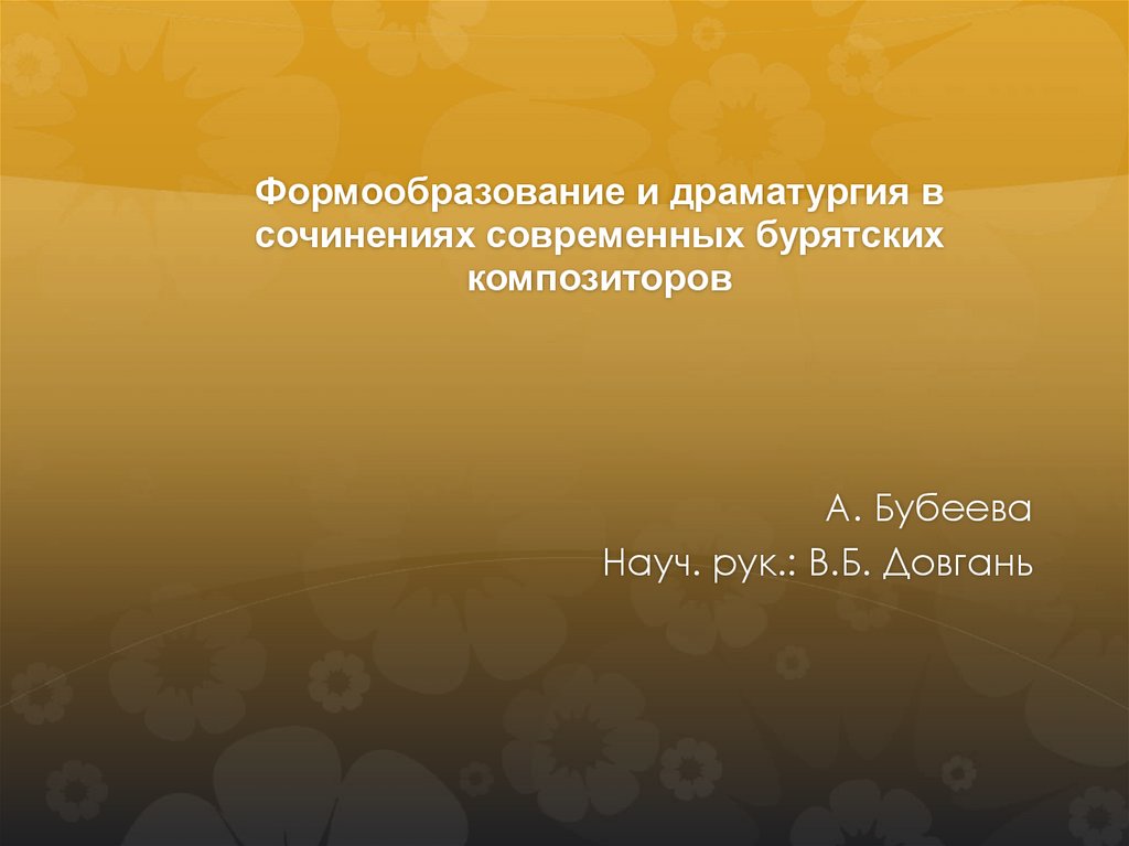 1. Формообразование и драматургия в сочинениях современных бурятских композиторов
