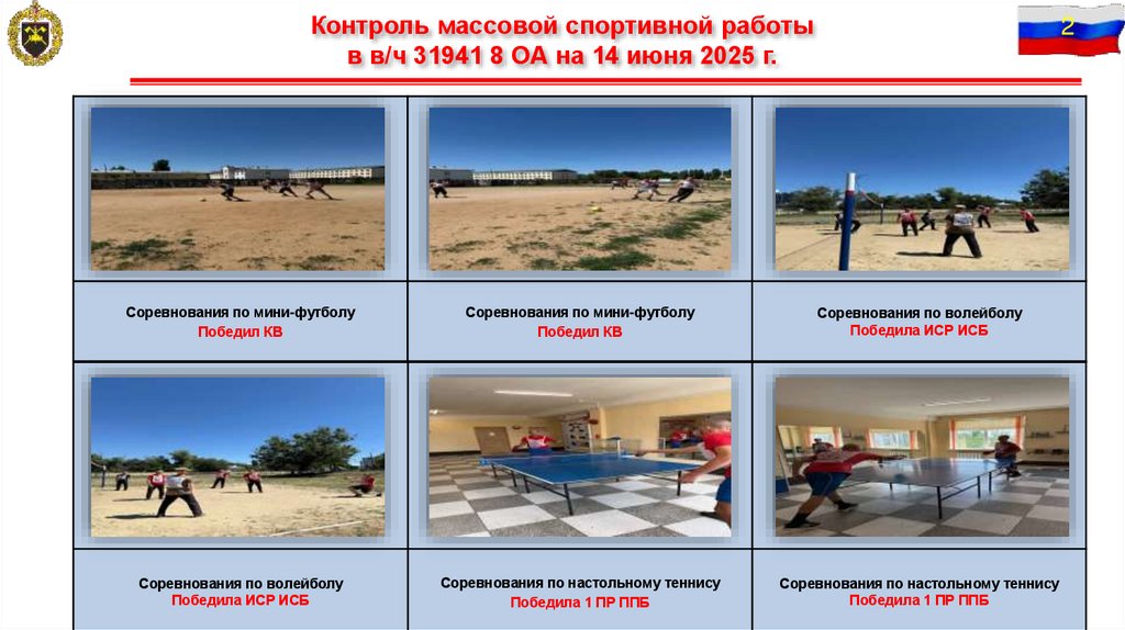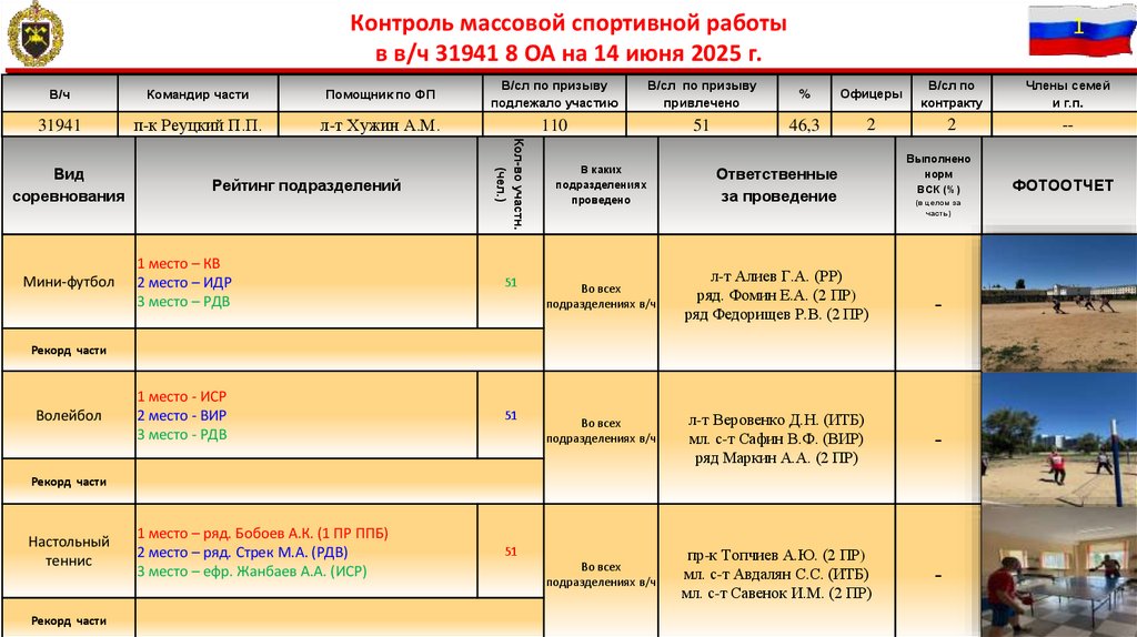 Контроль массовой спортивной работы в в/ч 31941 8 ОА на 14 июня 2025 г