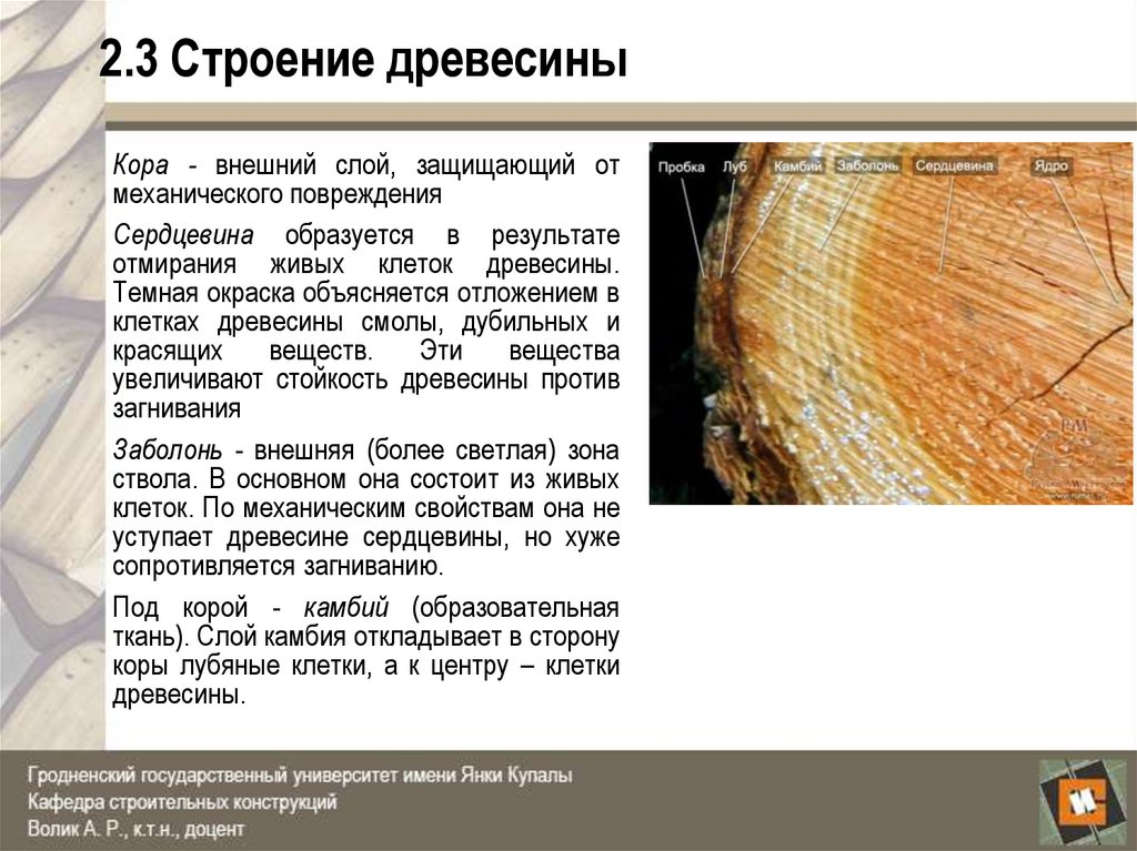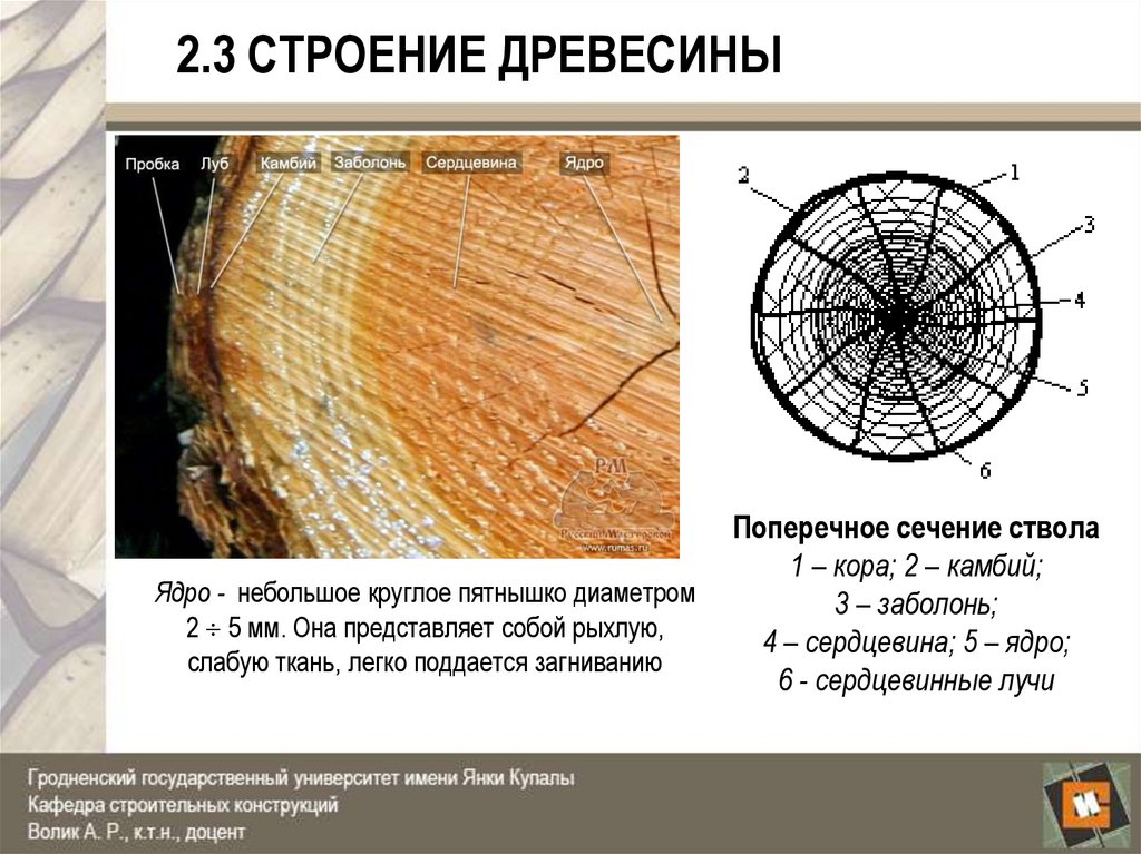 14. 2.3 СТРОЕНИЕ ДРЕВЕСИНЫ