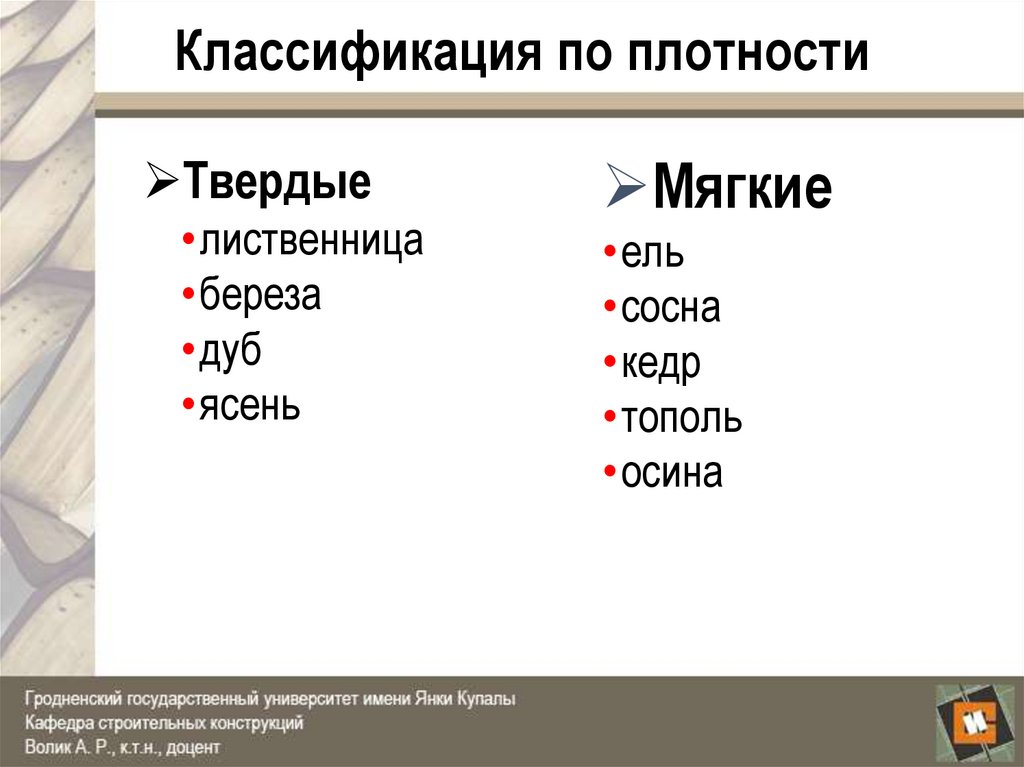 2.1 Классификация древесины по породе2.2 Круглые и пиленые лесоматериалы
