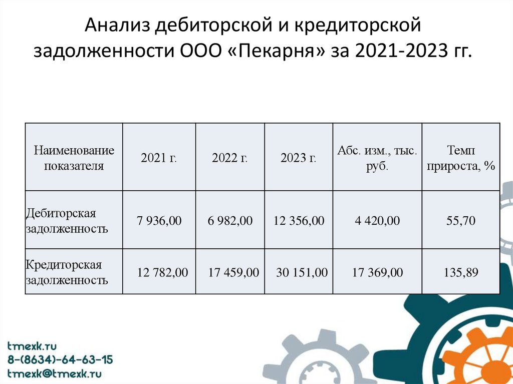 8. Анализ дебиторской и кредиторской задолженности ООО «Пекарня» за 2021-2023 гг.