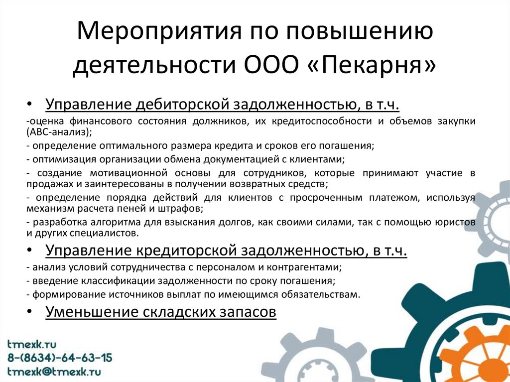 9. Мероприятия по повышению деятельности ООО «Пекарня»