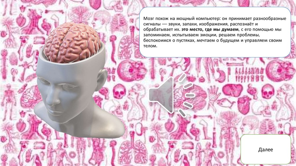 Мозг похож на мощный компьютер: он принимает разнообразныесигналы — звуки, запахи, изображения, распознаёт и