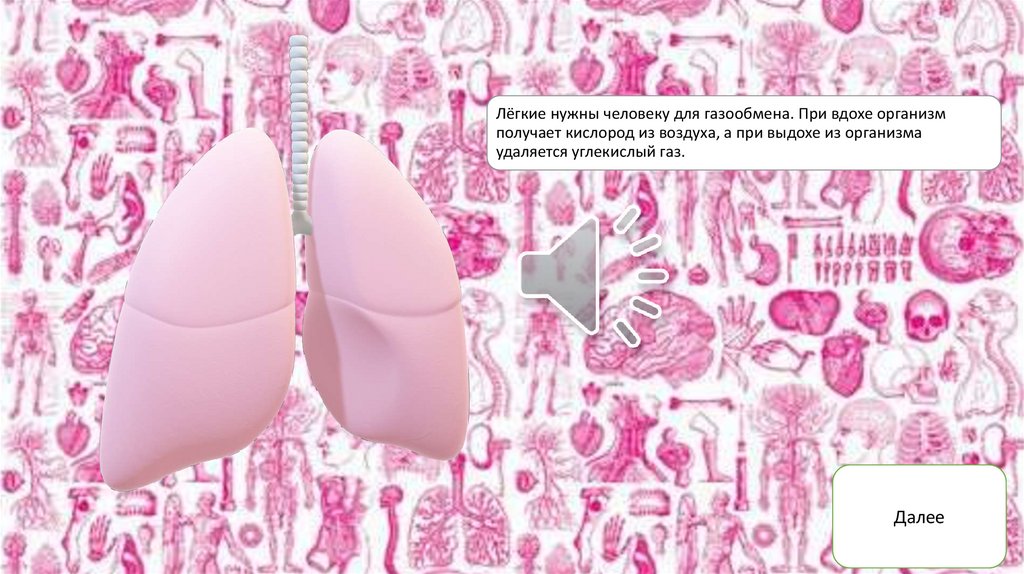 Лёгкие нужны человеку для газообмена. При вдохе организмполучает кислород из воздуха, а при выдохе из организма