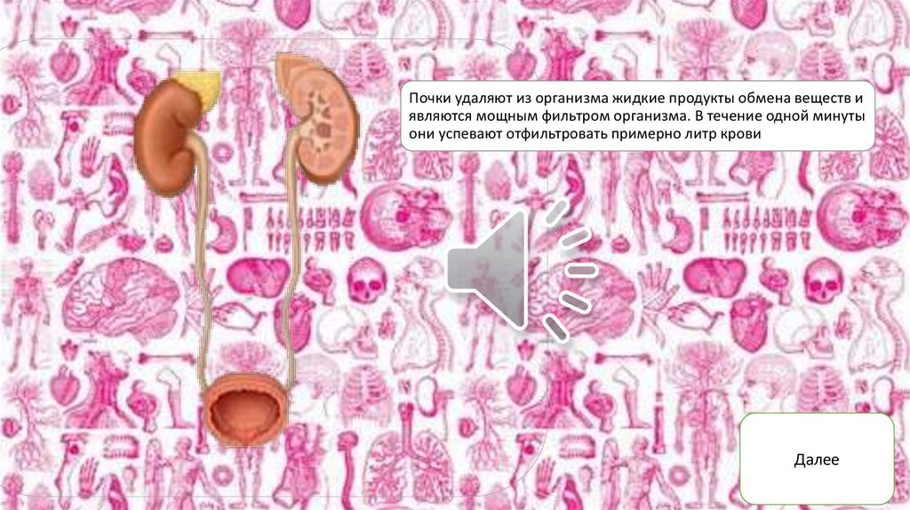 Почки удаляют из организма жидкие продукты обмена веществ иявляются мощным фильтром организма. В течение одной минуты