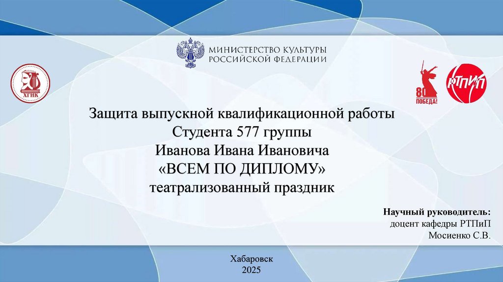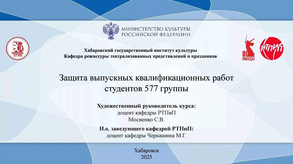 Хабаровский государственный институт культурыКафедра режиссуры театрализованных представлений и праздников