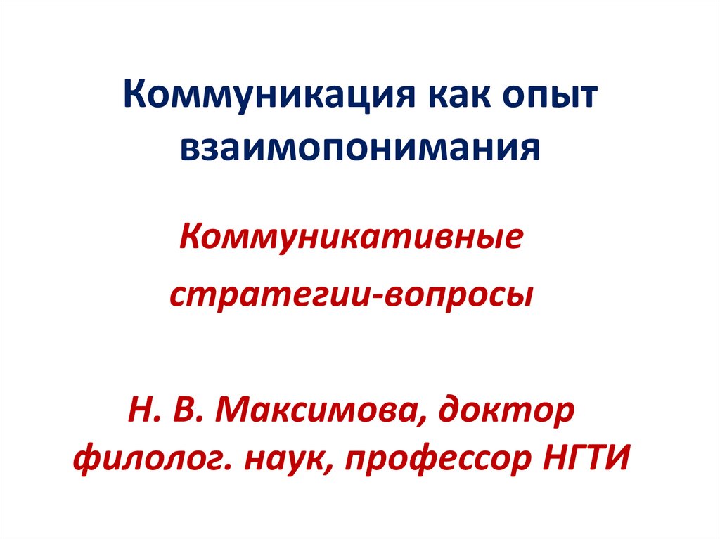 1. Коммуникация как опыт взаимопонимания
