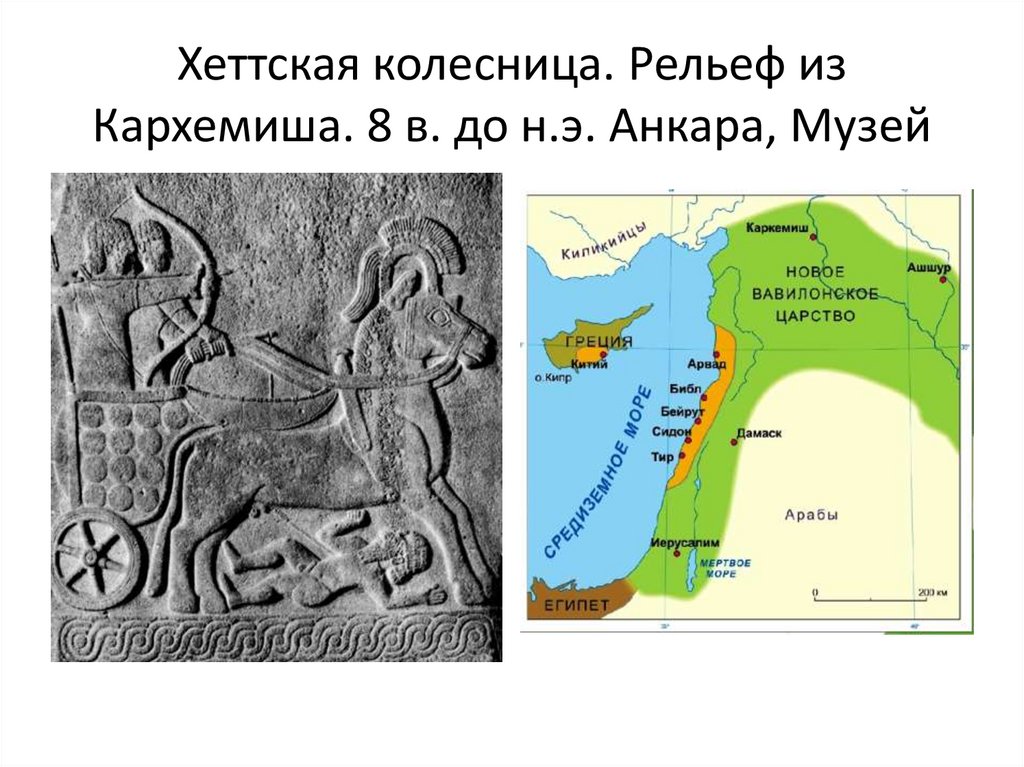 14. Хеттская колесница. Рельеф из Кархемиша. 8 в. до н.э. Анкара, Музей