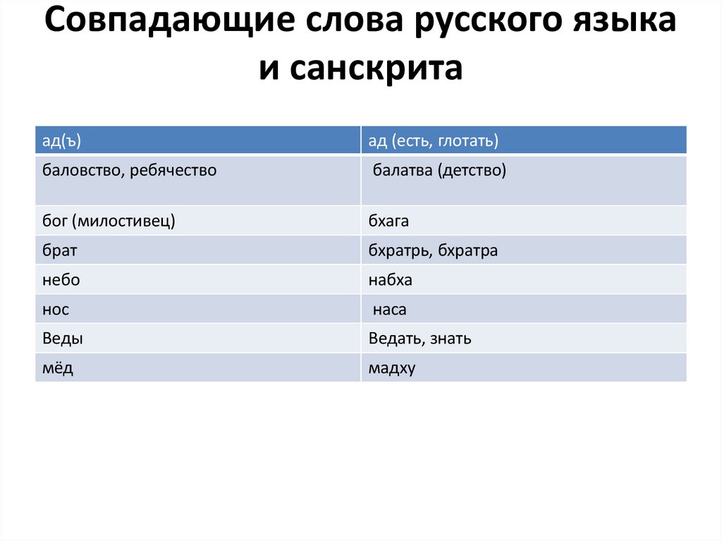Совпадающие слова русского языкаи санскрита
